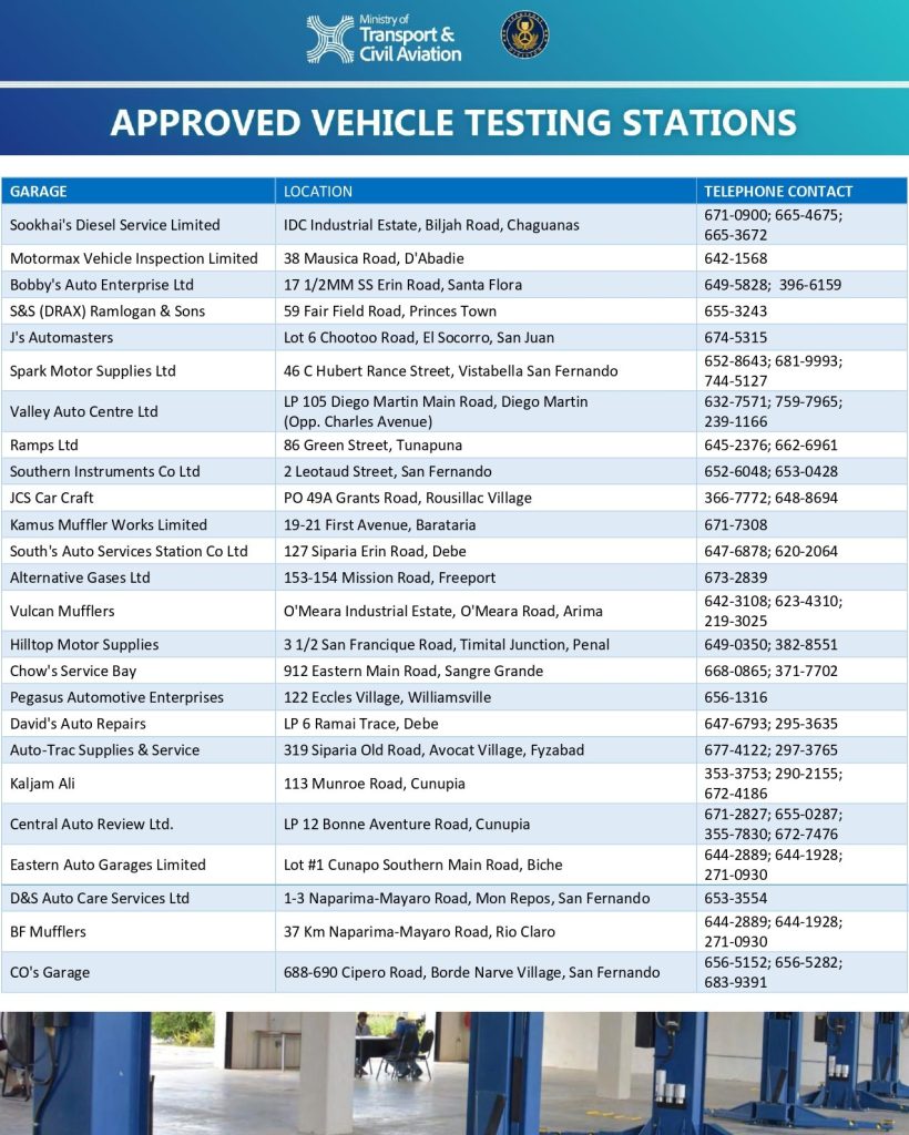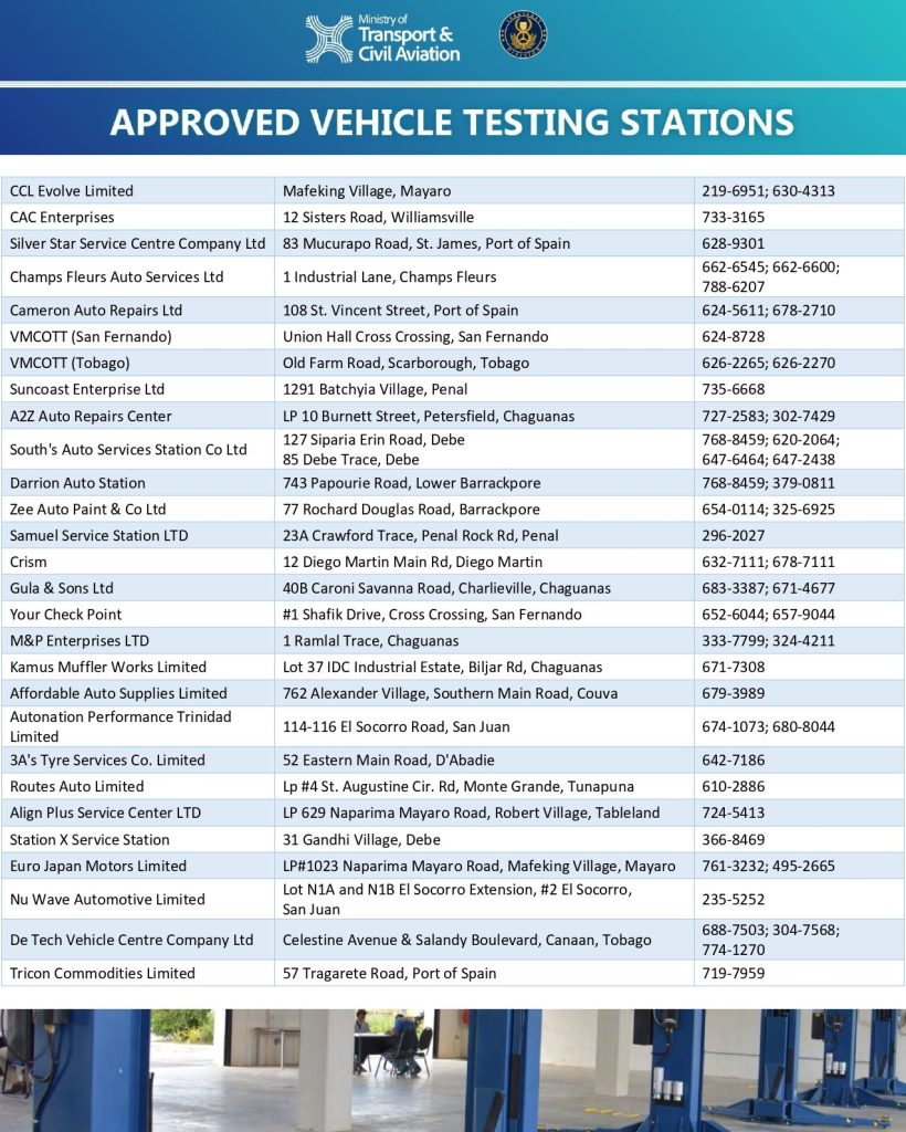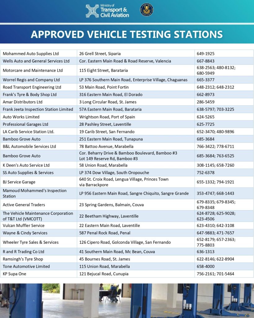 Additionally, the Vehicle Management Corporation of Trinidad and Tobago (VMCOTT) will be authorised to conduct inspections for goods vehicles exceeding 3,200 kilogrammes Maximum Gross Weight (MGW). Further note that Public Service Vehicles with a tare weight exceeding 2,270 kilogrammes will be required to conduct their inspections at the Licensing Office.
