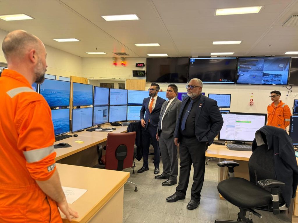 On 23rd January 2026, Dr the Honourable Roodal Moonilal, Minister of Energy and Energy Industries; the Honourable Ernesto Kesar, Minister in the Ministry of Energy and Energy Industries and; the Honourable Saddam Hosein, Minister of Land and Legal Affairs with responsibility for the Chaguaramas Development Authority, toured the ‘Amazon Warrior,’ a research and survey vessel attached to the Shearwater GeoServices seismic fleet. The vessel was contracted by Exxon Mobil Trinidad and Tobago Deepwater Limited to conduct a 3D seismic survey over Block TTUD-1. Dr Bram Willemsen, Trinidad and Tobago Operations Manager ExxonMobil was also part of the vessel tour, which was guided by Mr Benjamin Pentecote Party Manager at Shearwater GeoServices.