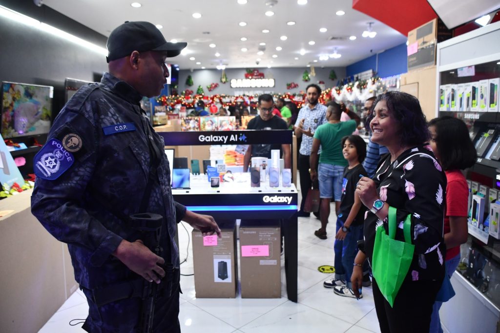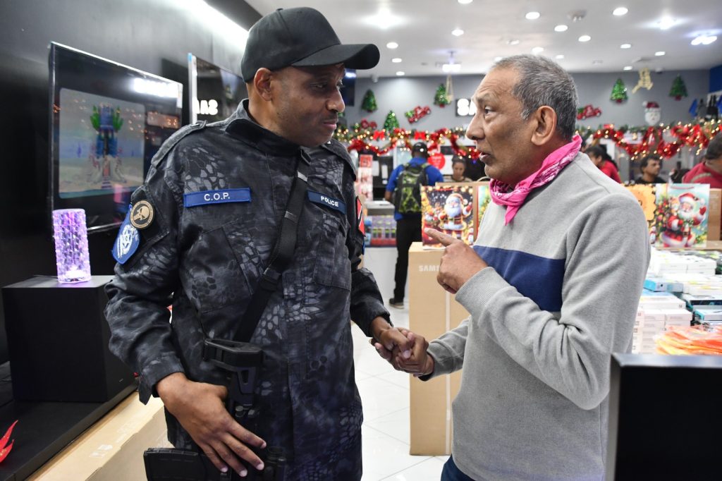 He then proceeded to the Central Division, patrolling along the Chaguanas Main Road—one of the busiest thoroughfares on any given day—where he interacted with citizens enjoying early celebrations in anticipation of the New Year. The Commissioner later headed east, visiting Trinity Mall and East Gates Mall, where he met with business owners and staff.