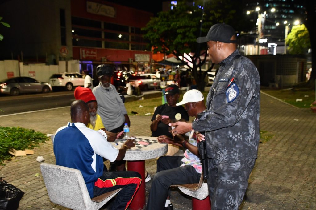 The patrol tour concluded in the capital city, Port of Spain, where the Commissioner conducted foot patrols at Independence Square and Charlotte Street, before ending the night at the Queen’s Park Savannah.