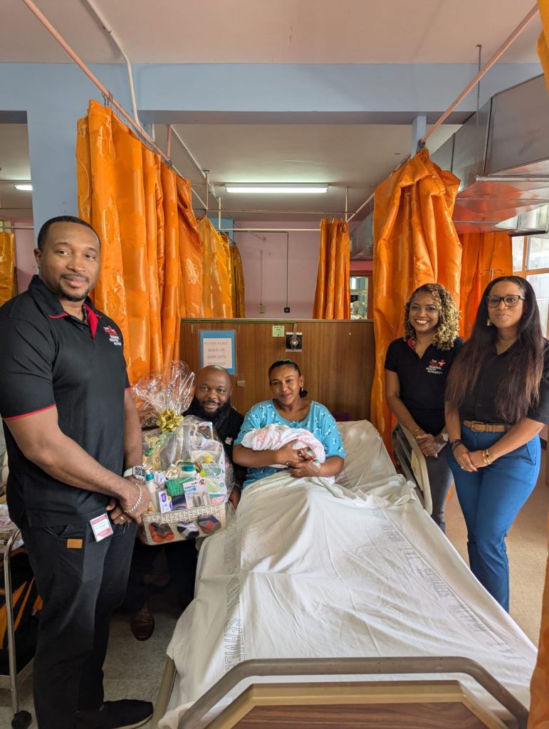 Members of the NWRHA’s management team including Chief Executive Officer Major Anthony Blake; Chief Operations Officer Kefim Lewis; Director of Health, Dr. Keisha Gangaram; and General Manager of Human Resources, Dr. Carissa Francois, presented tokens of appreciation to the mothers following the arrival of their bundles of joy.