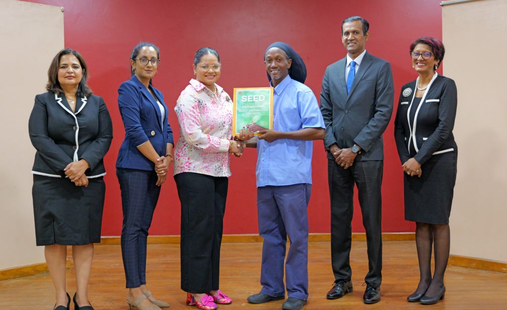 The Honourable Vandana Mohit, Minister of the People, Social Development and Family Services, led the distribution during which five (5) deserving clients received SEED Grants valued at sixtynine thousand, six hundred and seventeen dollars ($69,617.00), to the benefit of a total of twentythree (23) persons from the community.