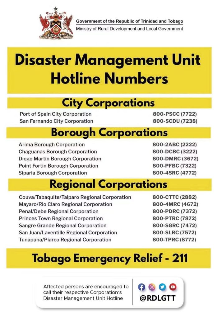 The Ministry of Rural Development and Local Government (MoRDLG) advises that Trinidad and Tobago remains under an Adverse Weather Alert – Yellow Level, issued by the Trinidad and Tobago Meteorological Service (TTMS) and currently in effect until 9pm today, Tuesday 25th November, 2025.